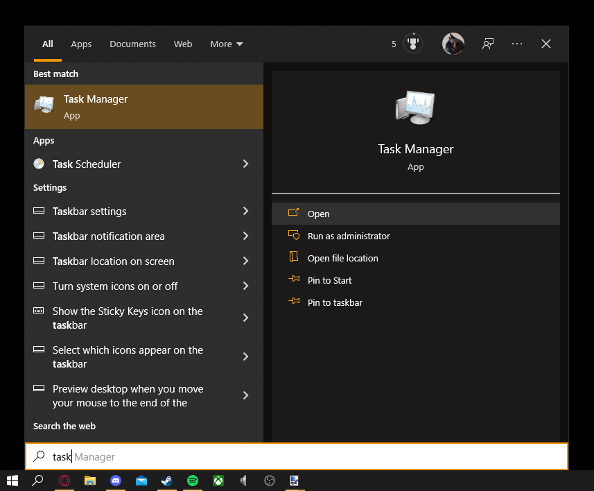 You can also just simply press the [⊞ Win] key and search for “Task Manager”.