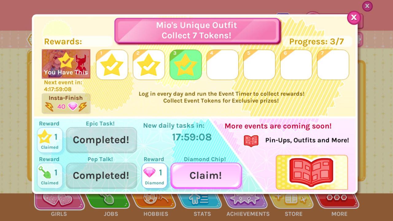 However, if you care about Event rewards, then you should be checking in every day in order to claim them, not spending your diamonds. Save those for better things.