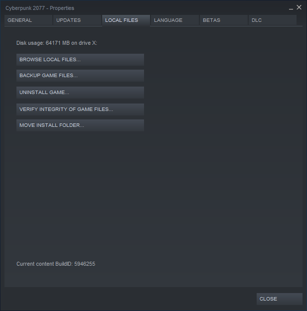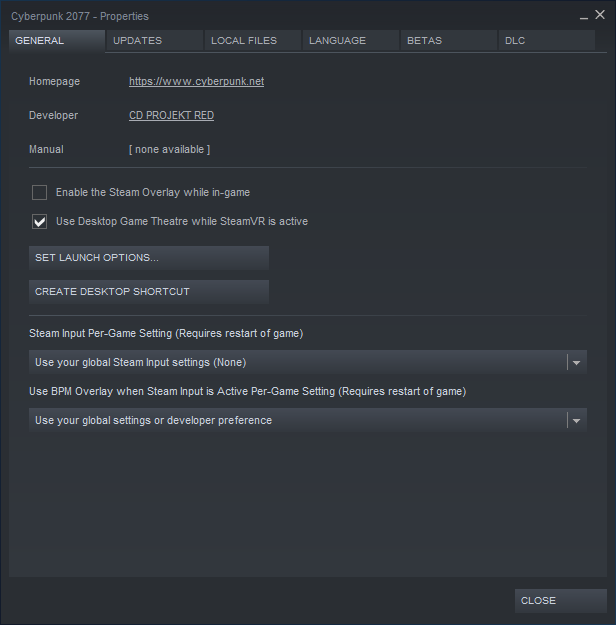 • If you are on Steam right click your cyberpunk game and go to properties, this window should open