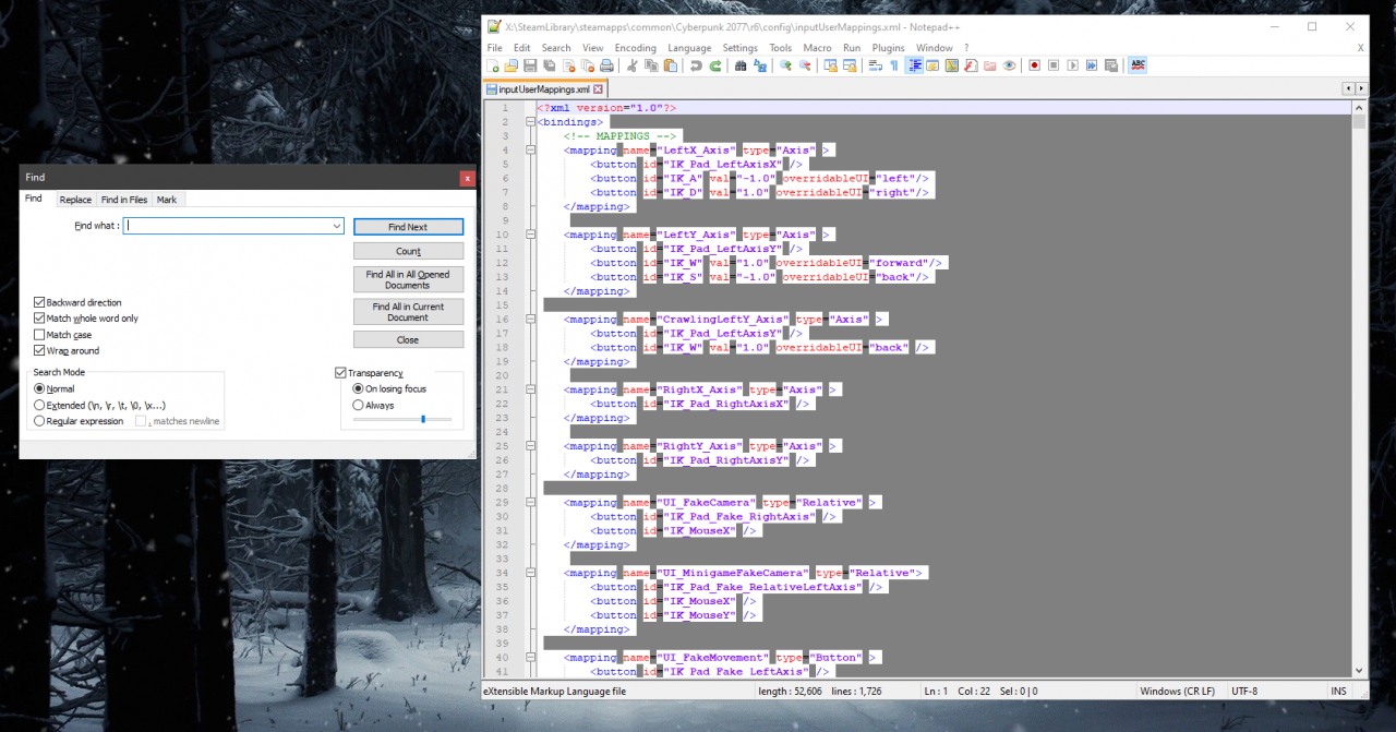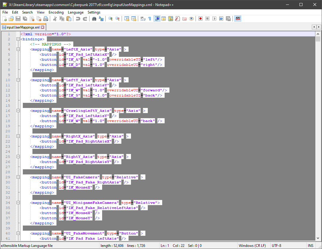 6. Open the inputUserMappings.xml file with your favorite text editor, I am using Notepad++ which makes things a little easier.
