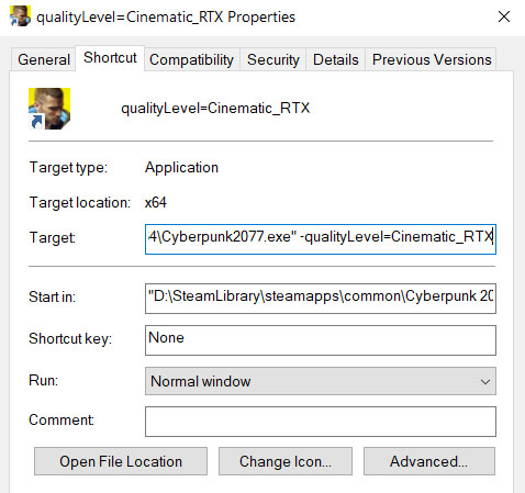 Create a shortcut from the game’s exe (\Cyberpunk 2077\bin\x64\Cyberpunk2077.exe) and add the following argument (don’t forget the space!):