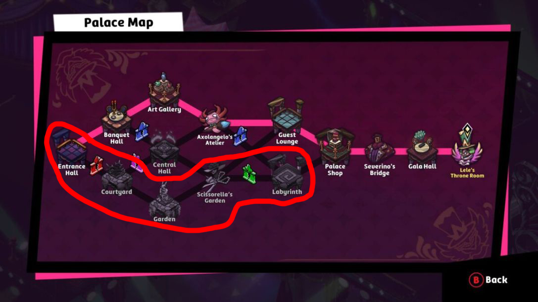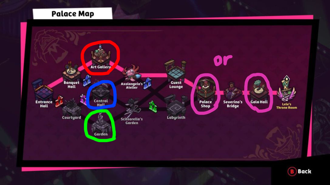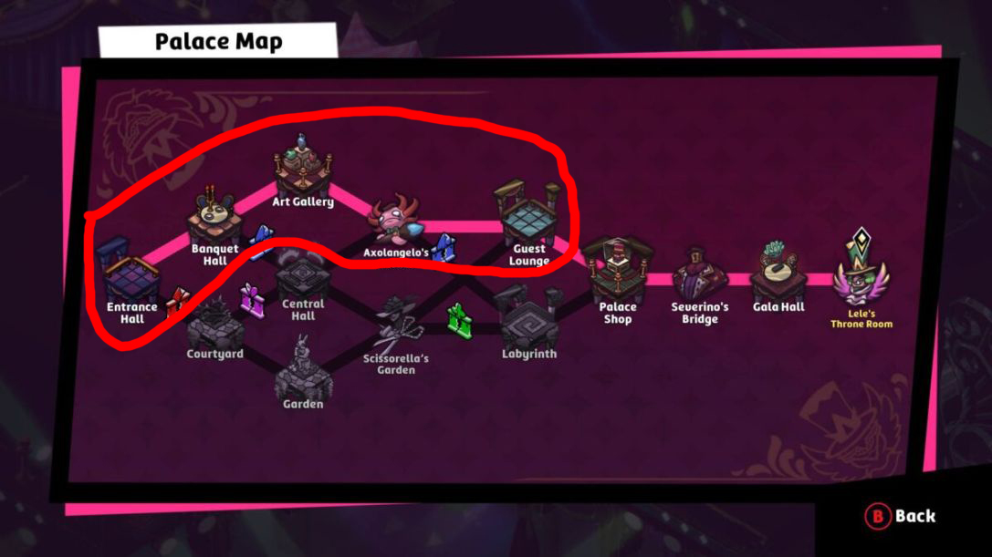 Beat the Inside Path of the Palace (Banquet Hall, Art Gallery, Axolangelo’s Atelier, and the Guest Lounge) in a single run.