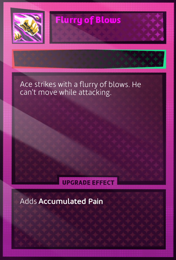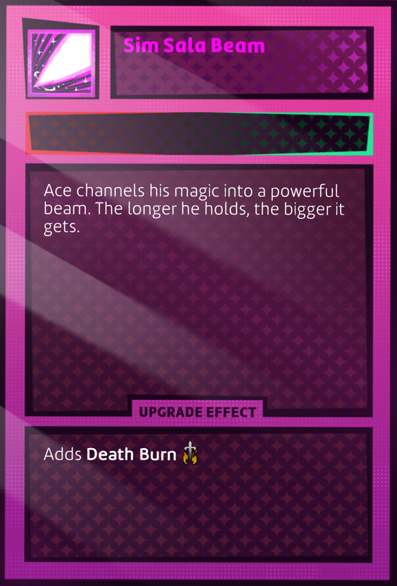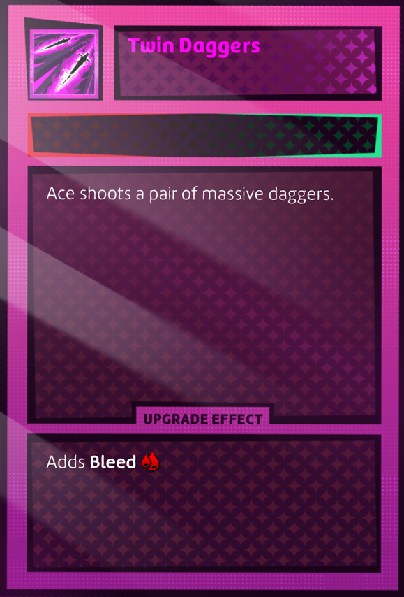 if you get this you are so lucky, this is the most powerful card i have even seen, it is spam-able & dmg all the enemies in line & give bleeding, if you give it an upgrade such is burn it will give all the enemy burn&bleed in a second and run away & do cc while they are take dmg, if you didn’t get it try to get this