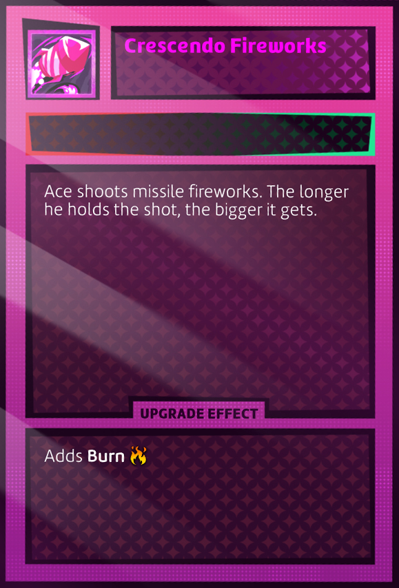 and for the last two i think cc give you the best chance to win, yes cc is useless in bosses, but thankfully all the bosses in dandy ace give you room to run away from dmg, and putting more pink card for dmg will not help since it will not give you room to stack the the burn or bleed and run away and using them, most of the time it doesn’t give you any help at all, at least not worth the hard time you will get in the locked room.