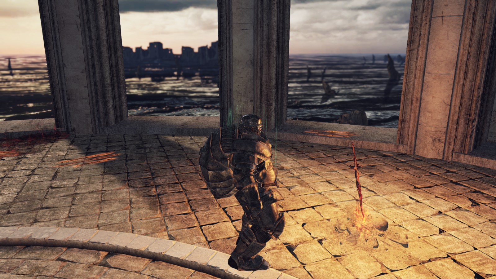- Once we’ve collected all the drops, we’ll head back inside the Blue Cathedral, and we’ll rest on it’s bonfire.