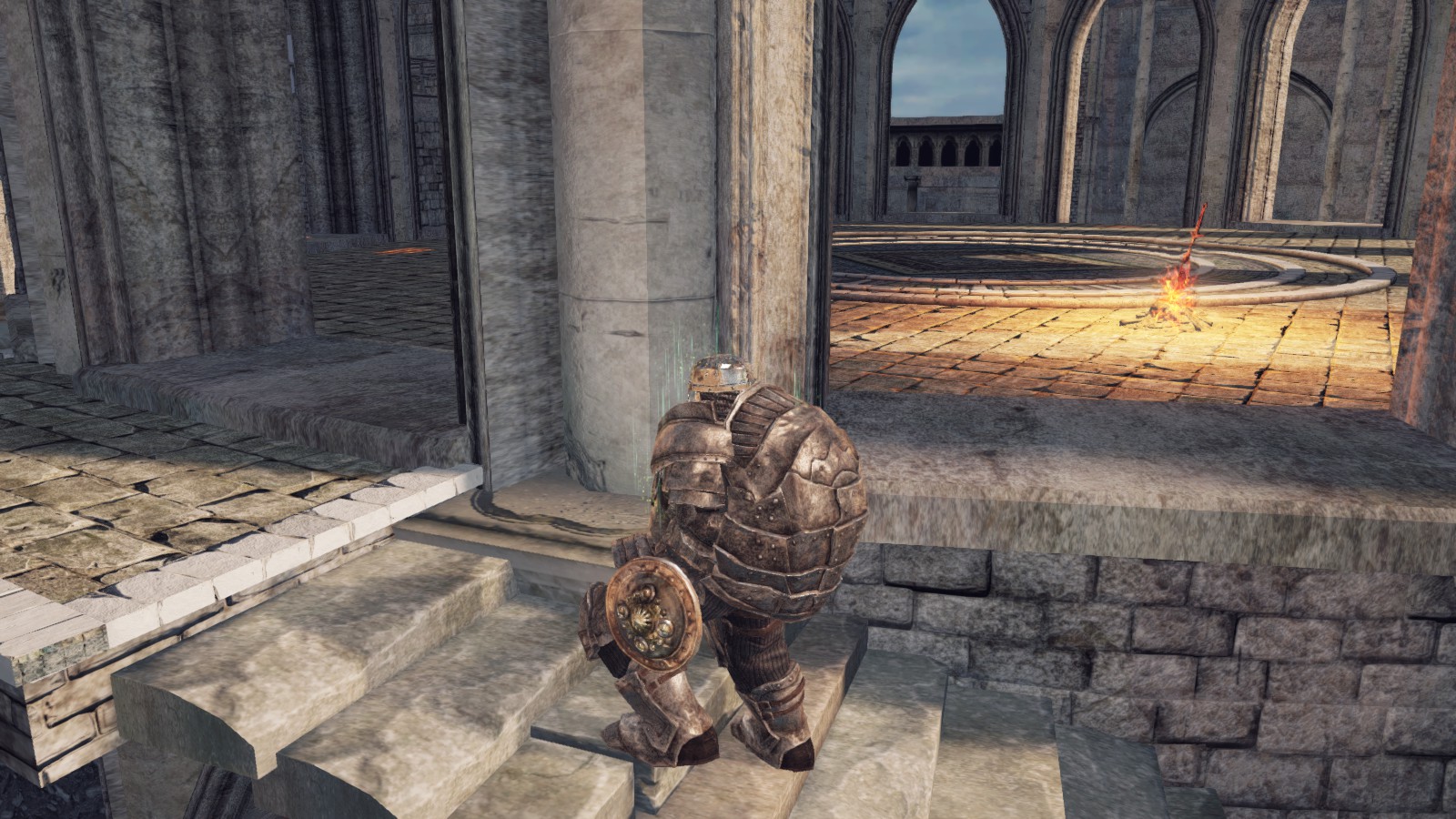 - We’ll go upstairs, and will go past the Old Dragonslayer’s boss room. This boss won’t respawn unless we burn an ascetic on the Blue Cathedral’s bonfire, that’s… something we won’t do for this farming method.