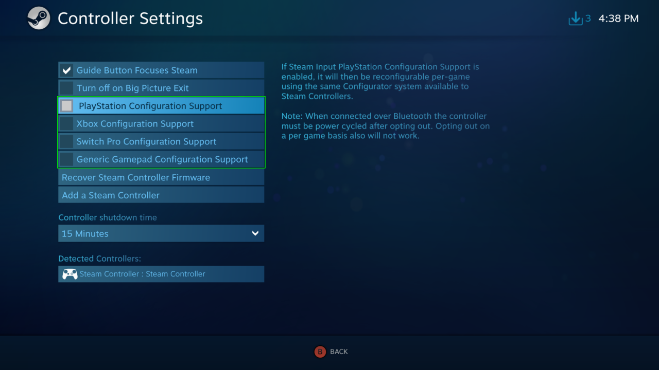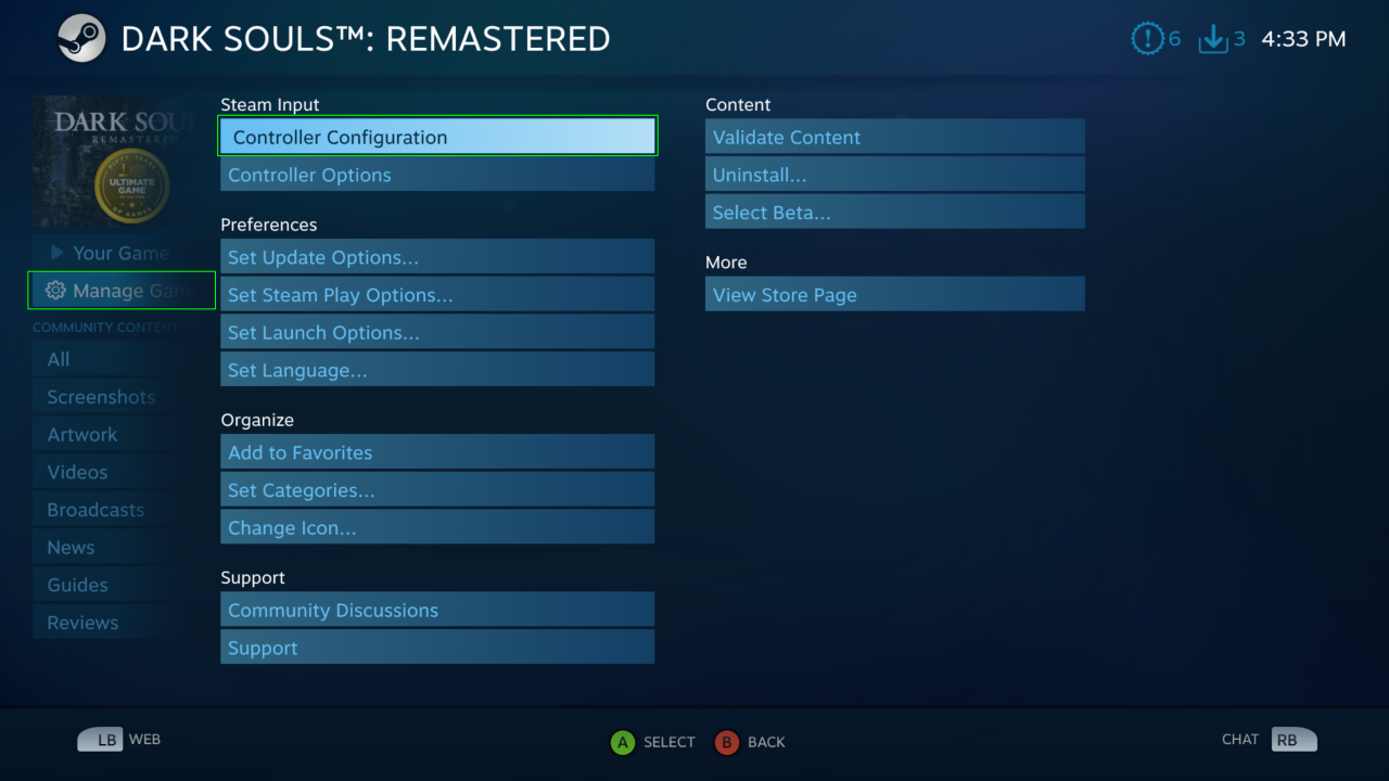 Select Dark Souls Remastered, then Manage Game, then Controller Configuration