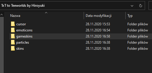 Open open the “skins” folder in the “data” folder, do the same only in the “TxT to Teeworlds by Hiroyuki” folder