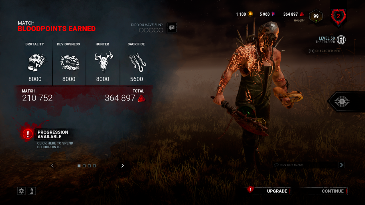 This Phase can also be used to get Survival points, survivors get points from strugling and getting off the Killer’s shoulders.