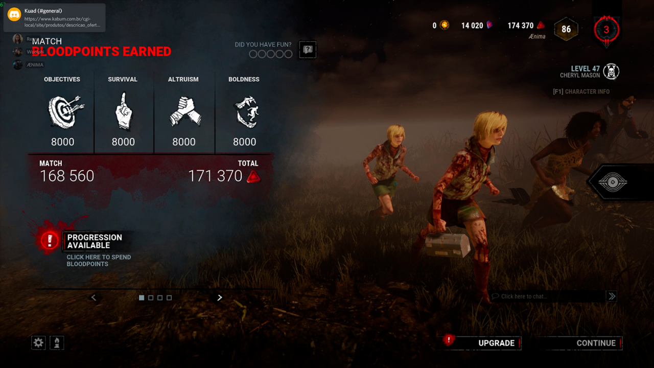 4 – Don’t take advantage of people: Don’t try to fool your group, telling people that you’re bringing Blood Party Streamers, bringing or not certain perk, telling people you dropped fewer pallets that you actually did, etc. If everybody agreed that everyone should bring Blood Party Streamers/Anniversary Cake and you don’t bring one, everyone will find out on the end game screen. If you use more pallets than you are allowed to in a group with no “Any Means Necessary”, someone may end up without pallets to drop. If you don’t have Offerings to bring, tell the group you don’t have any, most groups will still take you, and if the group is looking only for people with offering, just look for another group. And if you have Offerings, there is no reason for you to not share yours if the whole group is sharing theirs with you, resulting in more bloodpoints for everybody for the same time farming.