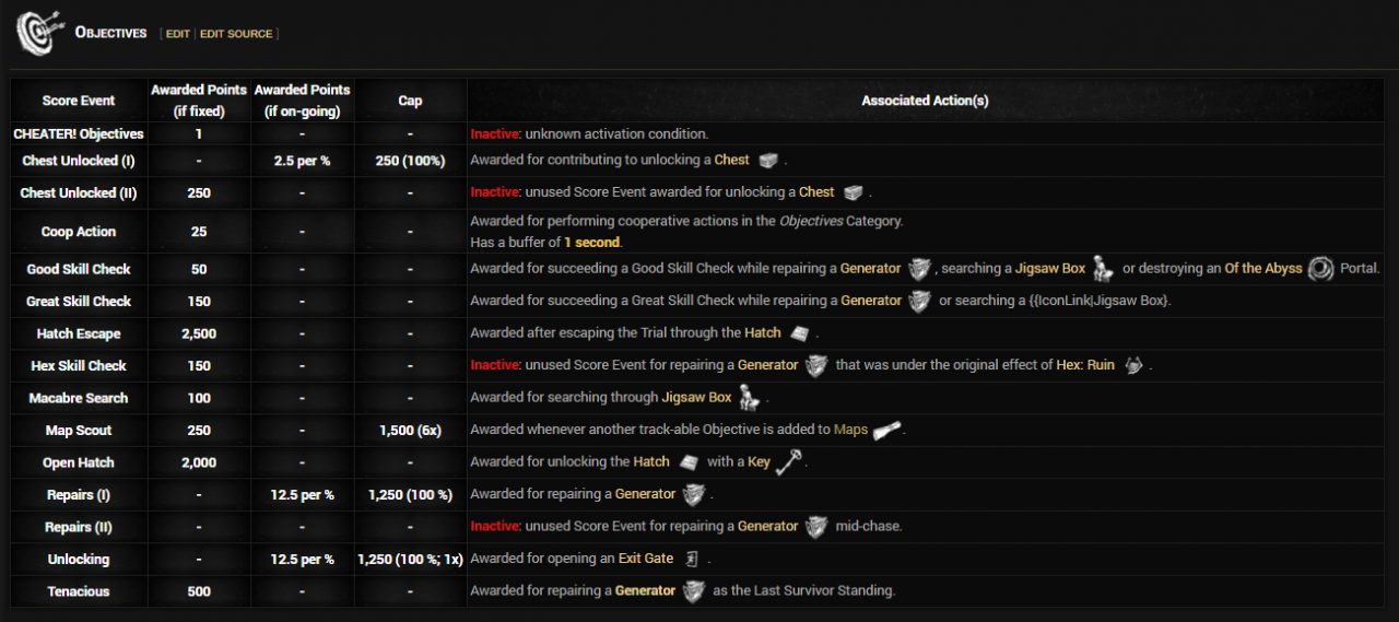 Hex:Ruin : This is one of the best perks for farming. During the farm, it always has the risk of people rushing gens so hard that some people can’t max the “Objective” Category. Ruin helps a lot in this situation, when the gen is about to finish survivors can just leave it and find a new one. That way the gen regresses so they can come back later to farm more points. Without this Perk everytime a gen is about to be done the Killer has to drop what he is doing and kick it so it regresses (at half Ruins speed). This Perk helps survivors to control Objective category points a lot.