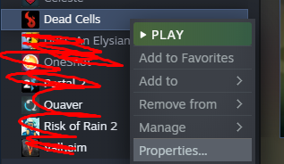 Right click the Dead Cells game icon in your steam library and click “Properties”.