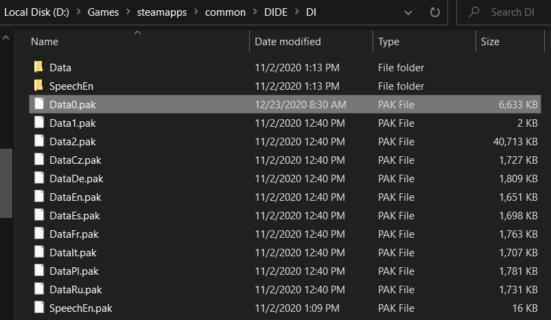 - Open up the DI directory and find Data0.pak. Open this file in 7-Zip.