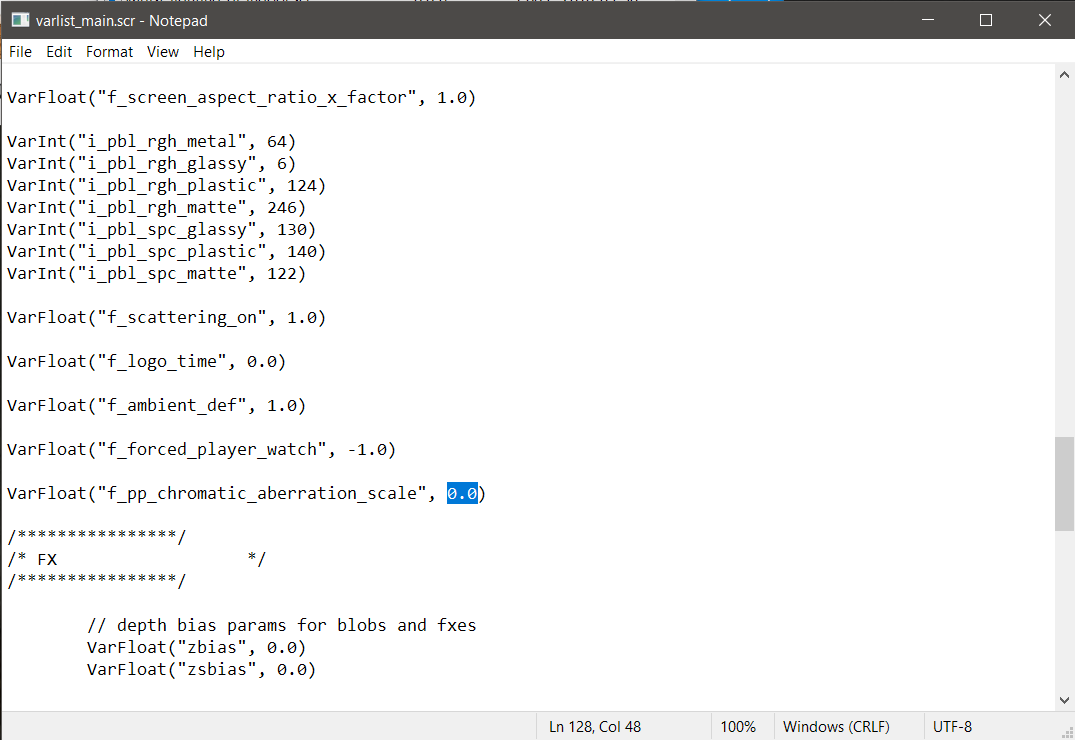 When I first started playing this game, I ran into an annoying problem that many others have encountered: While the game has an option to disable chromatic aberration, it turns itself back on every time there’s a loading screen. The only available fix uses files from a mod for Dying Light which causes some graphical glitches, and also completely failed to do anything about the chromatic aberration for me. So I decided to look into fixing it myself and found a much cleaner solution.