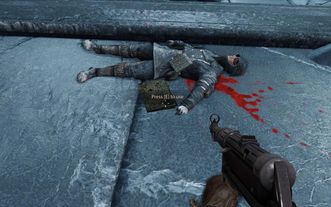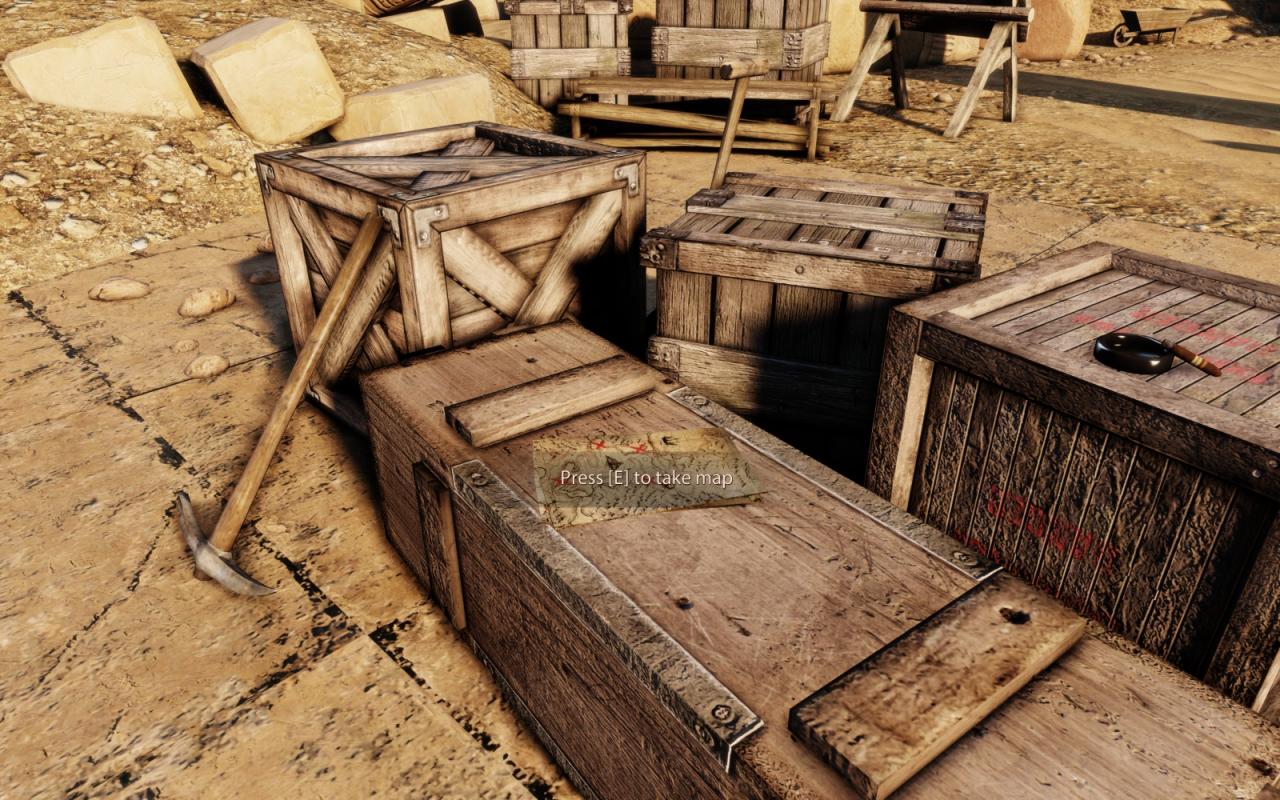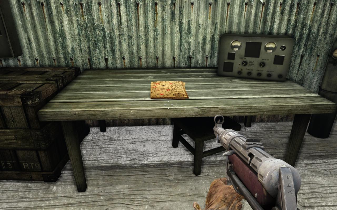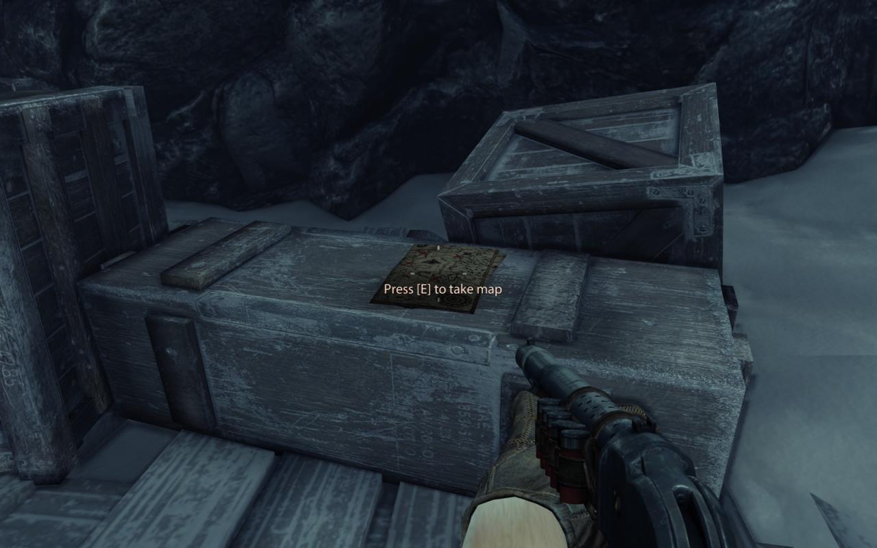 Enter the abandoned base through the gate and go to the barrack on the right marked “A1” (watch for grenade traps!). The map is located on the desk inside the barrack.