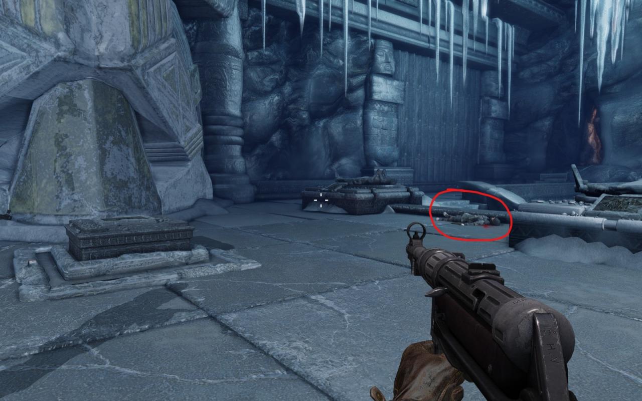 After the gunfight at start of the level shoot the rope to make a bridge, cross it and after climbing the stairs take a look on the right of the Ice Temple entrance. The map is on the ground next to a body.