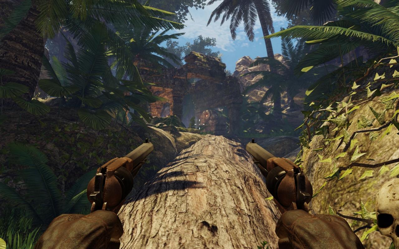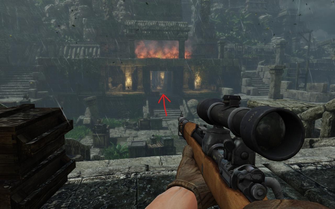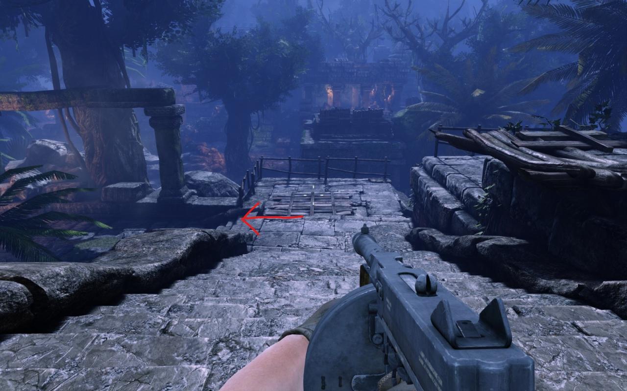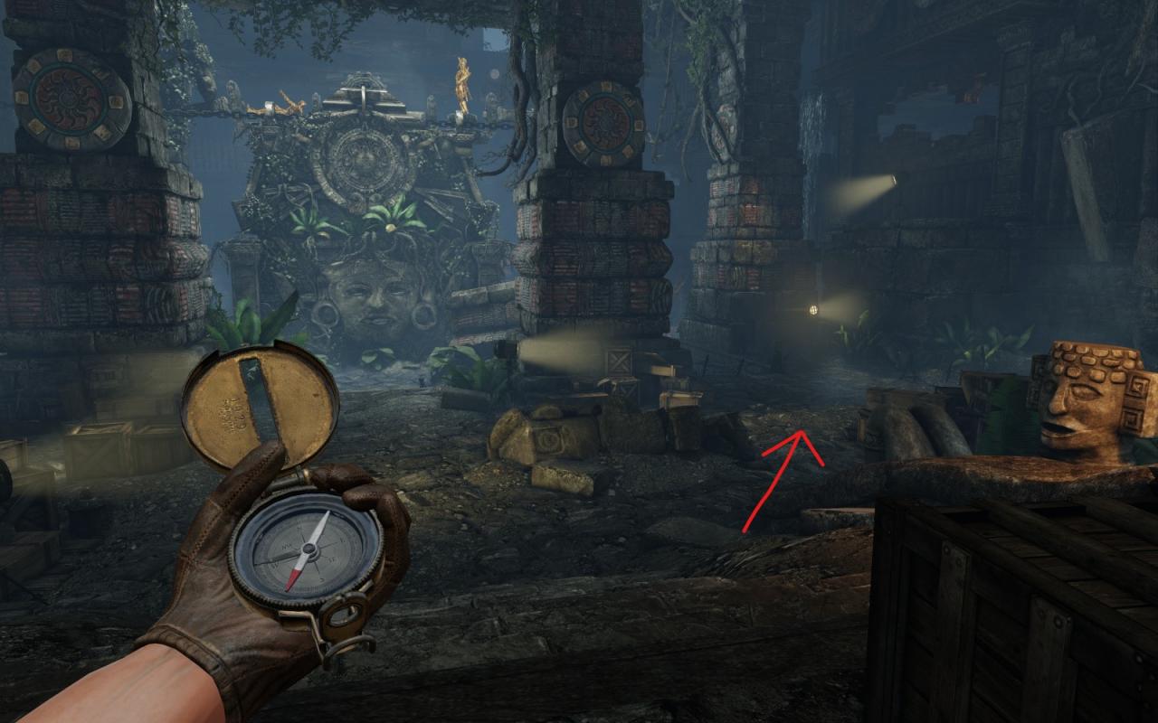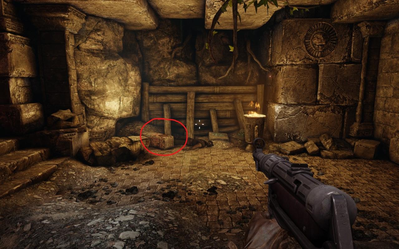 Proceed into the jungle from the starting location. Soon you will encounter first Mayan ruins with a trap inside. Next to a trap lies a body which is holding the map. Be careful not to step into the trap.
