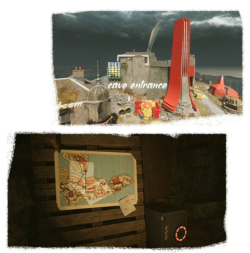 📑 Classified InformationOn the lower edge of the map, near the Tunnel entrances.The code can be found in the AEON Archival Office, which is on the top floor of the building right beside the bunker entrance. It is hidden between some boxes on one of the shelves.
