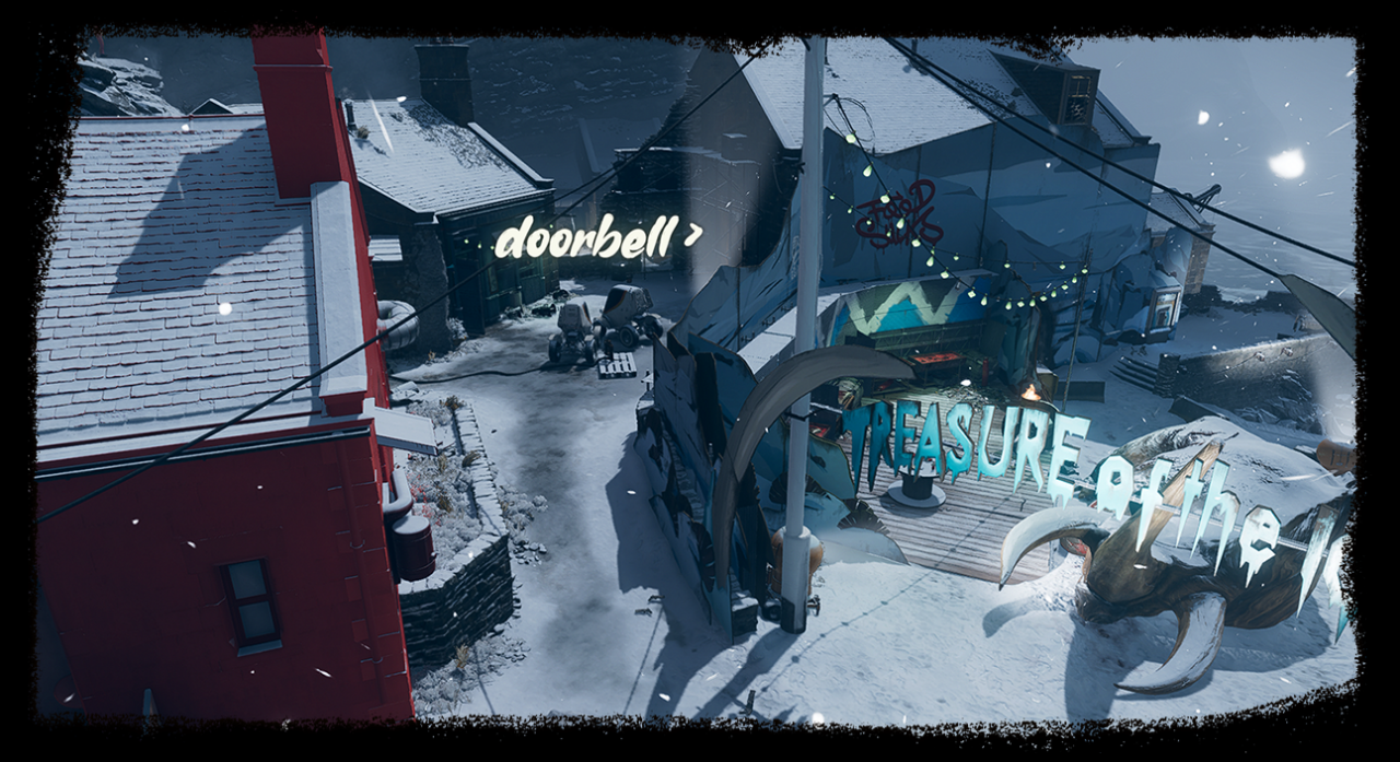 Karl’s Bay Hideout is located near Treasure of The Ice along the Main Road (Coordinate M13). Ring the doorbell the correct number of times indicated in your radio transmission to gain access & then be sure to read all notes in the Hideout to acquire the third code.