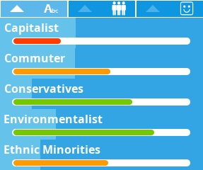 They may be unhappy with all of the other aspects of their life (liberalism, motoring, parenthood, patriotism…). In this case they may still vote against you. They might be saying to themselves, ‘As a socialist, I love the current government, but thinking about the bigger picture, I cannot vote for them’. This is a key concept to win over the electorate, it’s not enough to pick a single voter group and make them happy.
