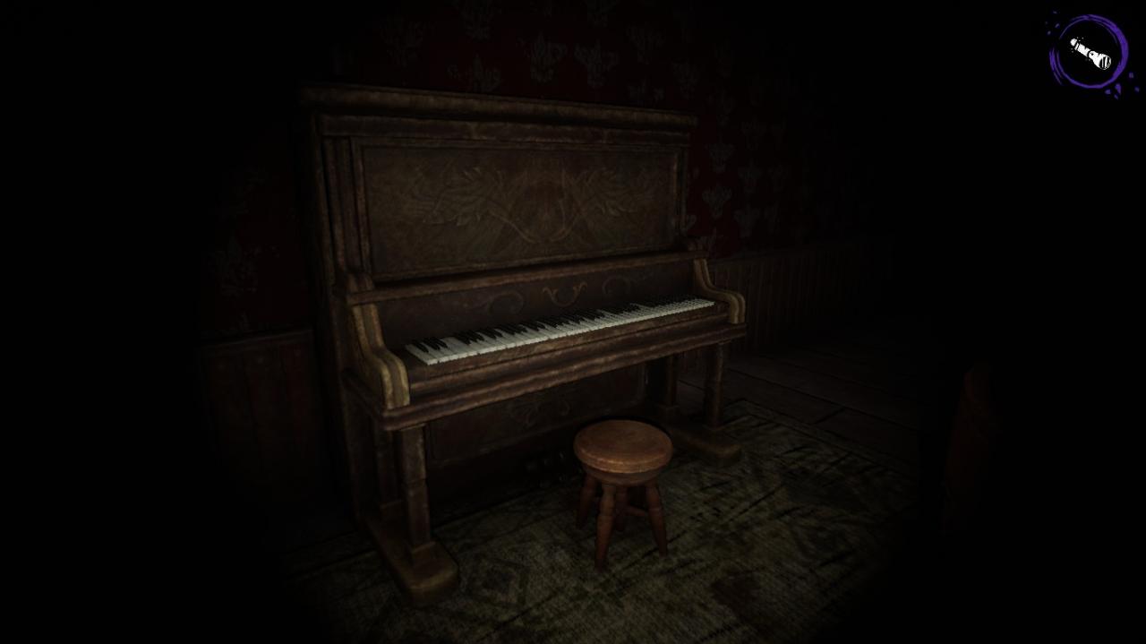 The piano will immediately stop playing. This is step one. Walk up the stairs directly to the left, (you will hear footsteps), and walk into the bedroom that you hear the steps from. When you enter, walk towards the window and collect the key on the table. The key should be the key for the Church. After this, walk outside, nothing has been summoned yet.