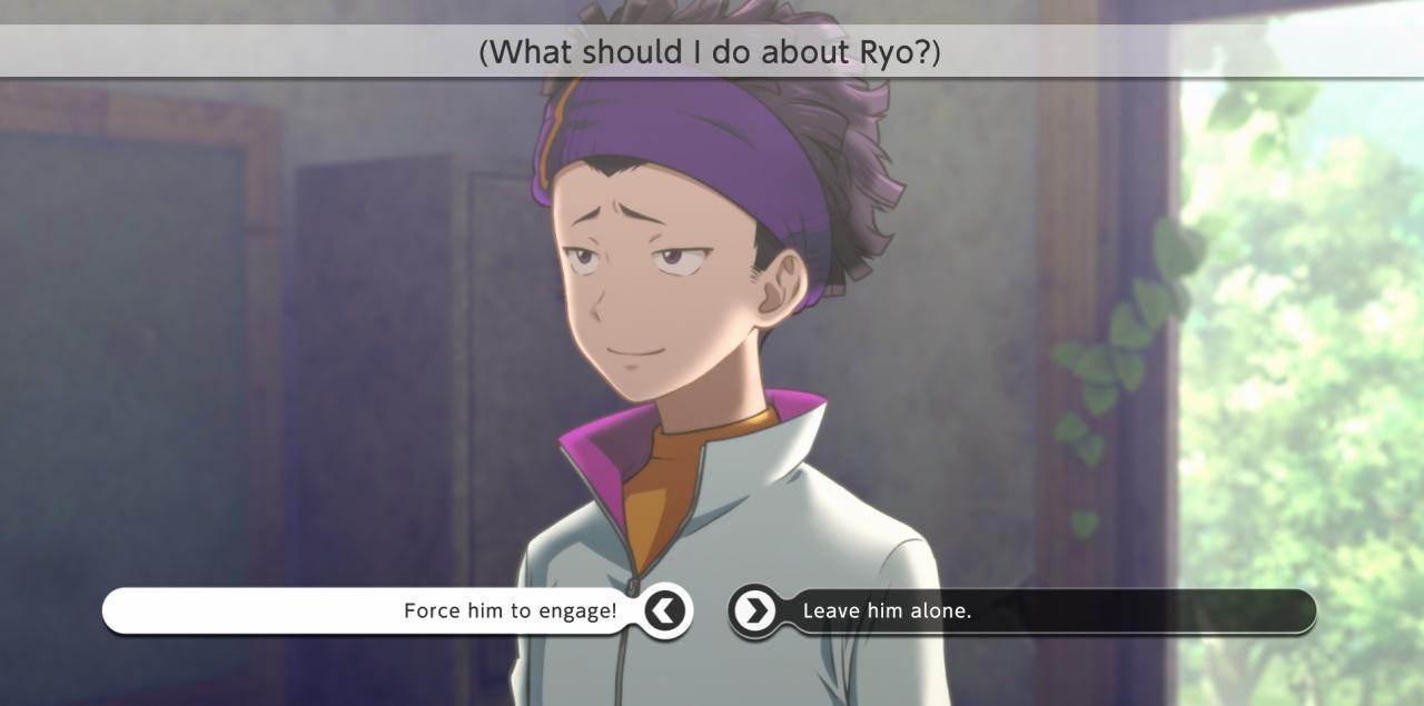Talk to Ryo two times. The first one is for moral, harmony, etc.