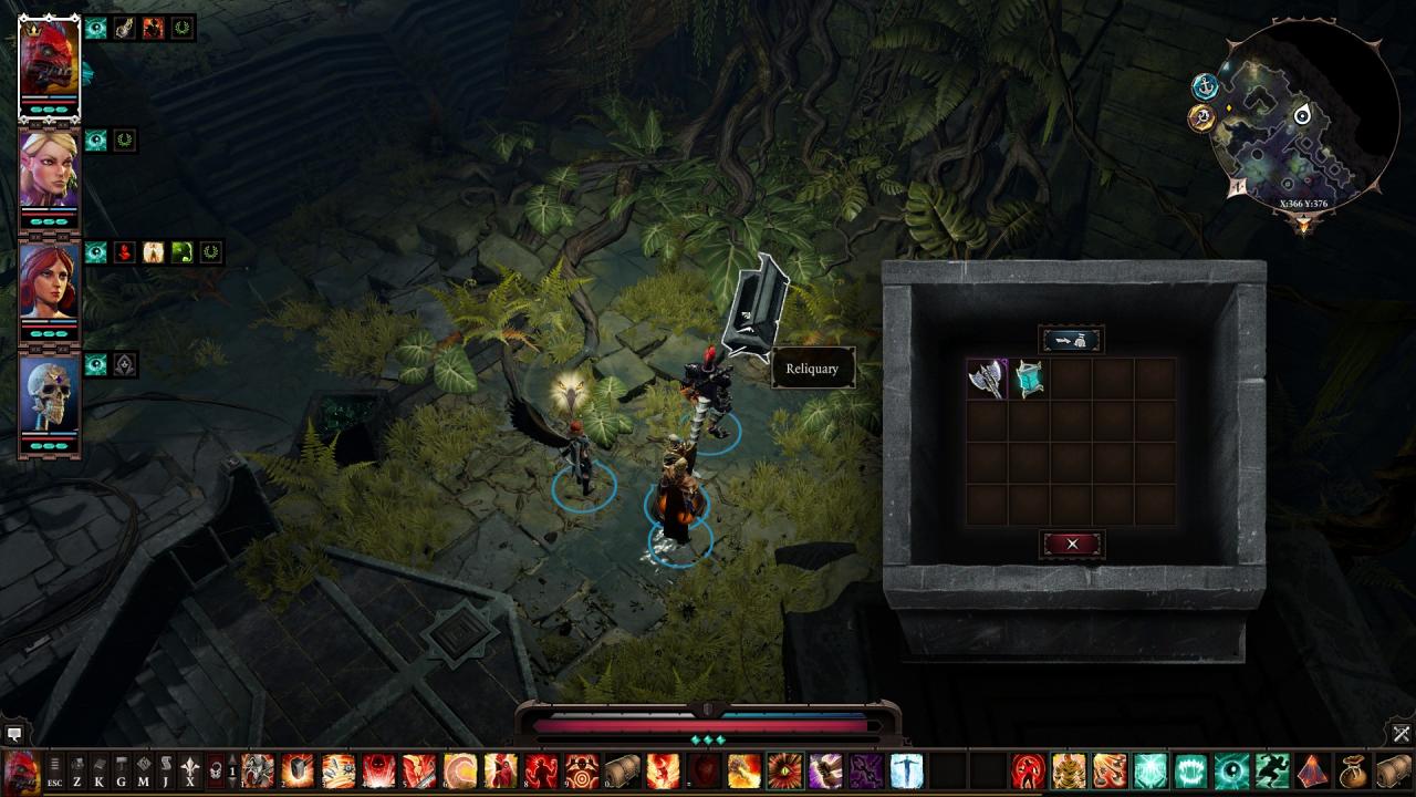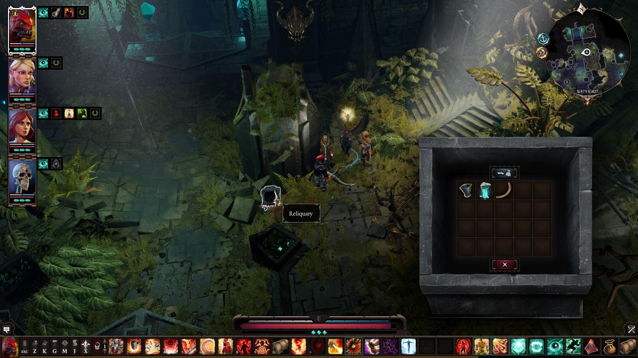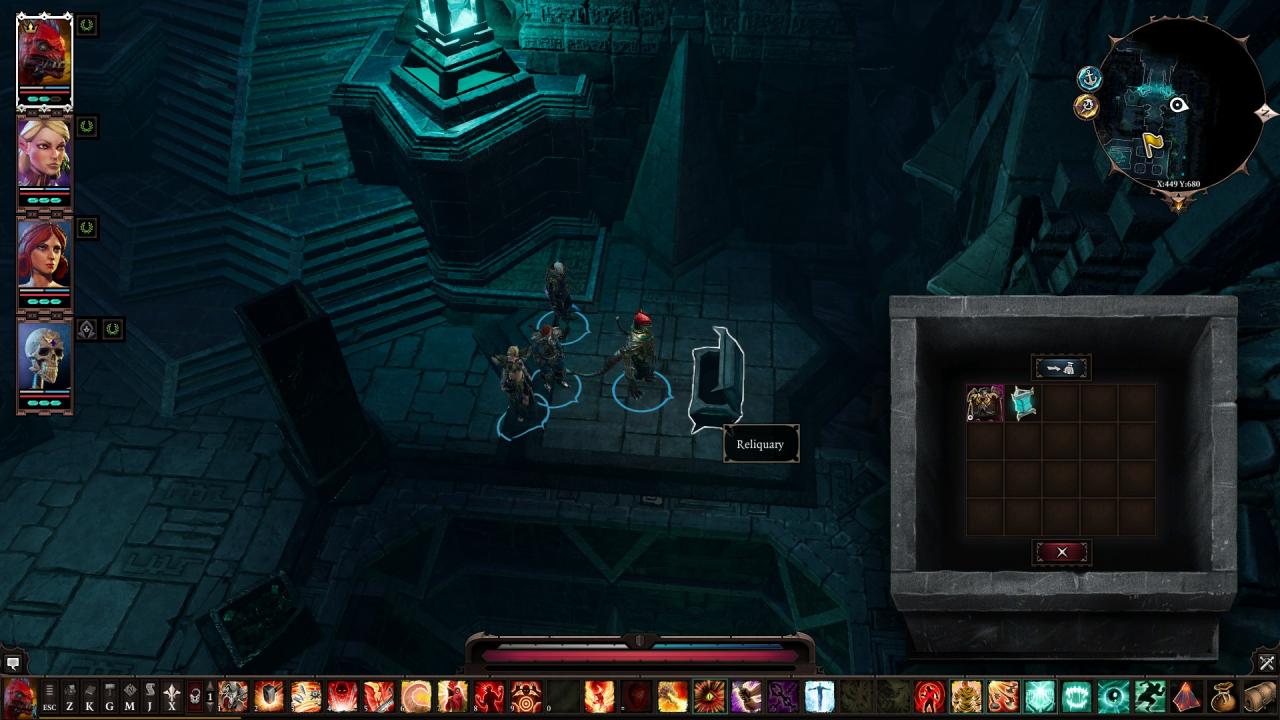 On the northern side of the temple, next to the entrance that leads to another hall, there is a broken pillar where you can find a reliquary amongst the rubble containing an Eternal Artefact (Weapon).