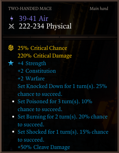 - WEAPON – 25% Air damage & 15% chance to set Shocked for 1 turn