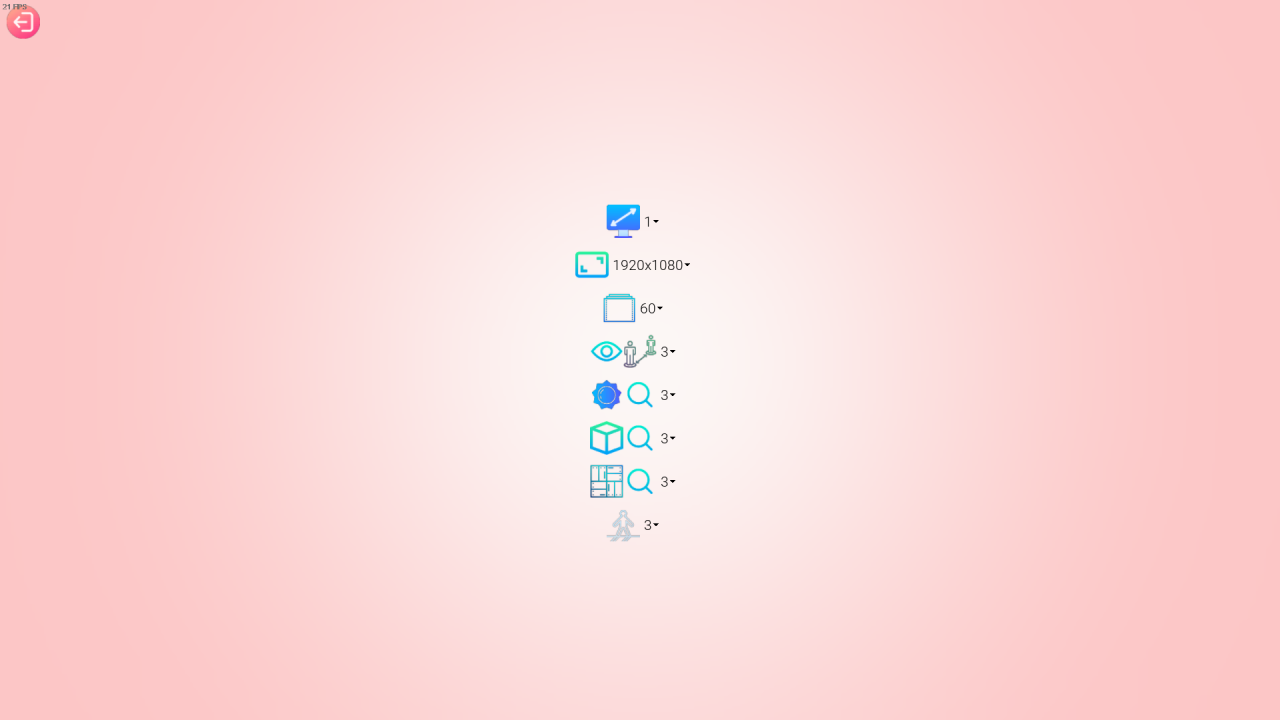 -The third setting (the thing that looks like a film strip) changes the fps cap. Cap it at 60 fps, or 30 if your PC somehow needs you to do that to run.
