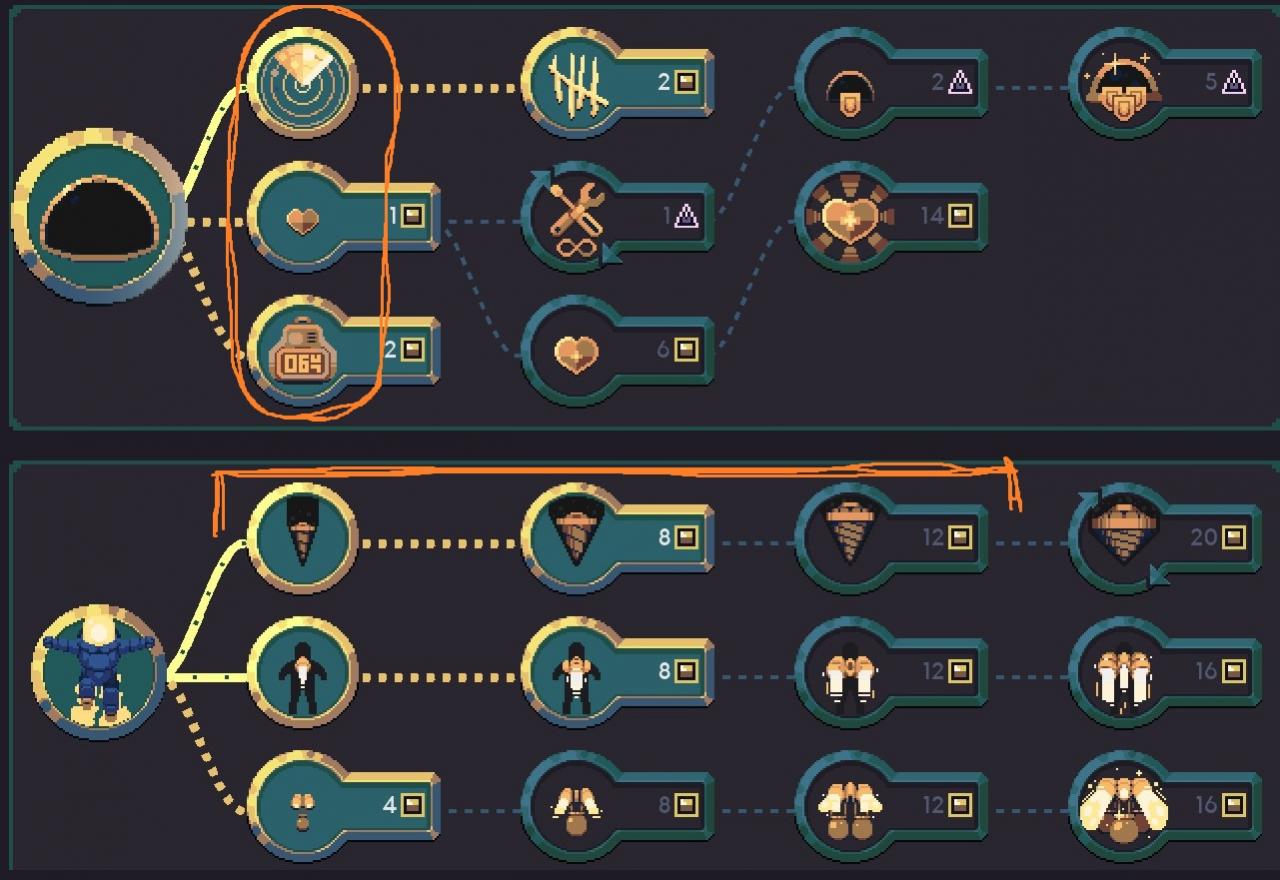 - Try to upgrade the first vertical line of your character. Drill will help you to explore faster, the speed will help you to spend more time under without sacrificing hp of your dome and being able to carry more will help you to grab more minerals (3 → 5) without slowing down