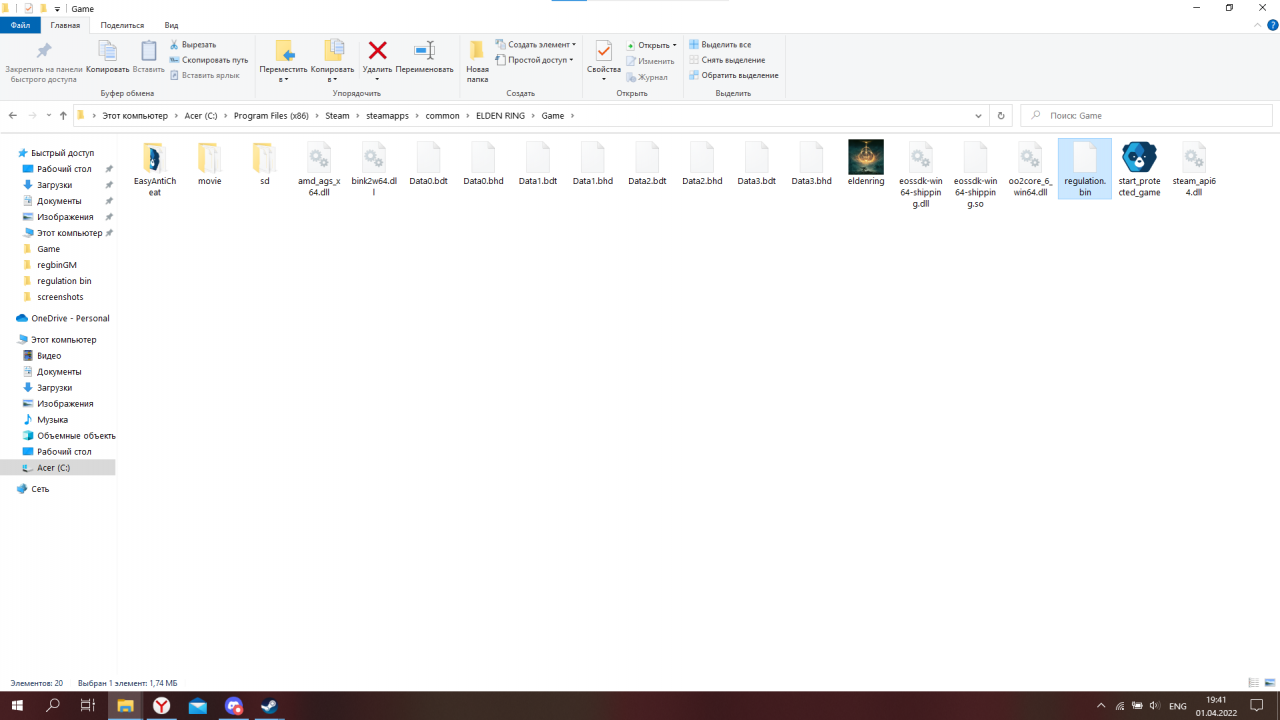 Open the Elden Ring root folder in Steam and find the Regulation bin file