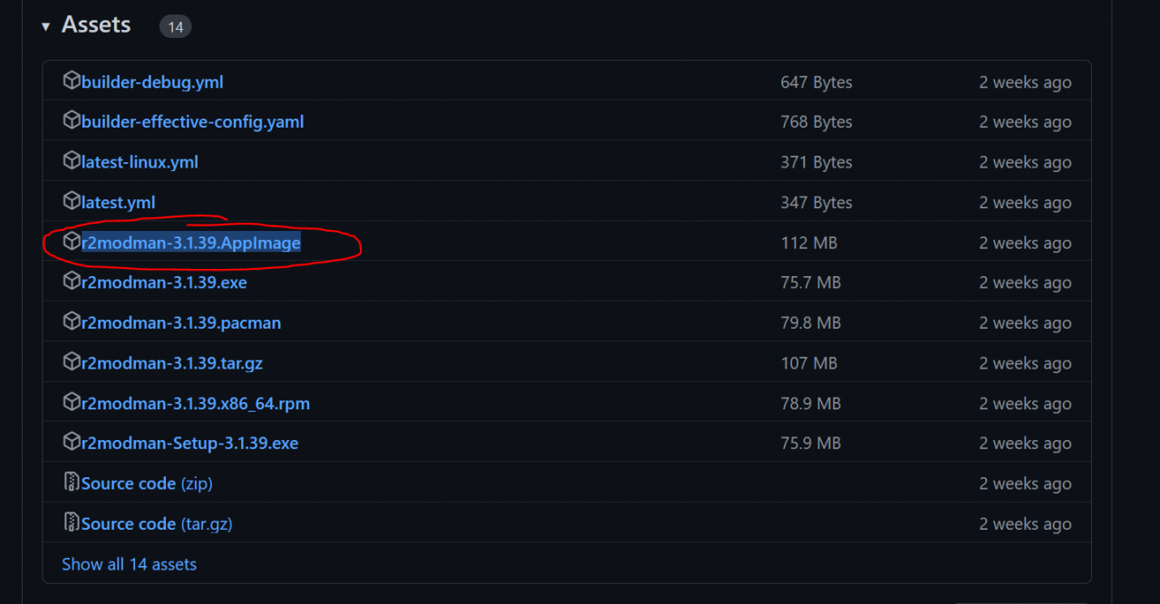r2modman-3.1.39.AppImage from the official Github for r2modman. We’lll be sourcing our mods from here to make downloading easy.
