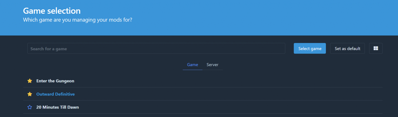 - 1. Select EtG from the game selection screen. Choose the steam version, and select the default profile or make a custom one if you’d like now.