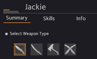As you can see, Jackie has access to four different weapon masteries – Daggers, Two-handed Swords, Axes, and Dual Swords.