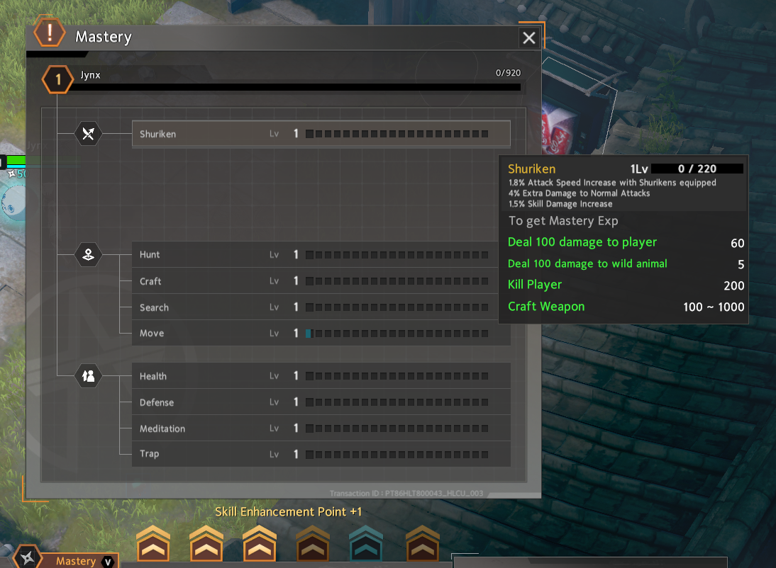 For now, you see how the overall level is one? That’ll raise once I gain Mastery EXP, and this is done by fulfilling certain criteria that is unique for each Mastery. You can check these by mousing over the Mastery window by pushing V. Don’t worry about memorising or trying to max out specific stats, only a few really matter.