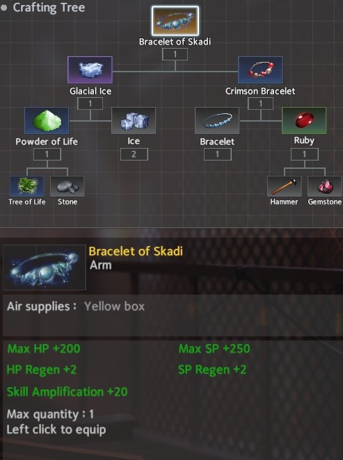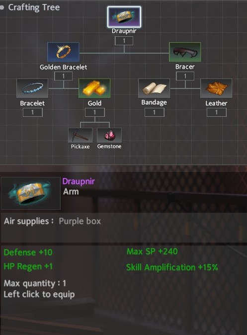 For Arms, the Draupnir seems the clear winner for a standard game. The slightly more greedy option would be the Bracelet of Skadi which requires the Tree of Life. The Draupnir can be completed in 2 areas: Pond <-> Hospital. Similar to the Draupnir, the Bracelet of Skadi can be completed in the same 2 areas + Tree of Life spawn. Although, the Bracelet of Skadi is a bit more greedy, it provide unquestionable survivability and the additional HP wouldn’t hurt.