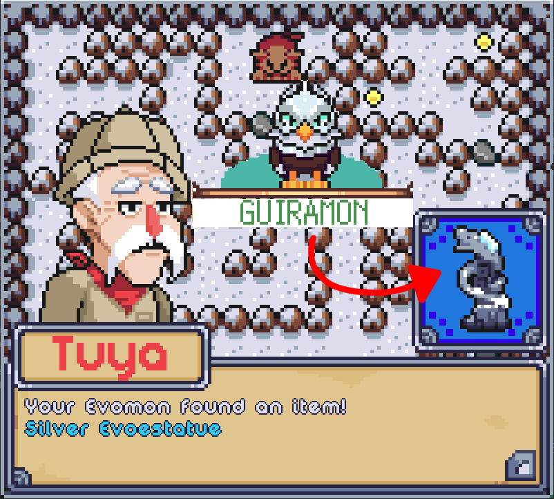 Doing a fusion between any 2 evomons while using the item Silver Evostatue will result in a Guiramon egg.