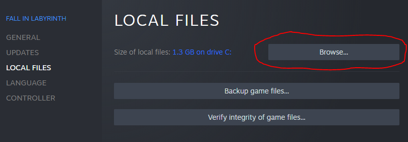 1. Right click Fall in Labyrinth in your Steam library, and click properties.