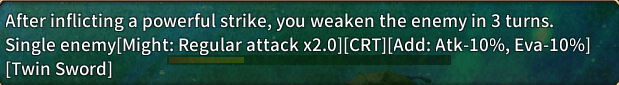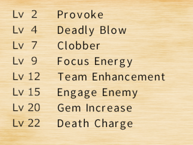 Knight’s Pride – (When HP drops to below around 20%-30%, DEF and MDEF +50%)