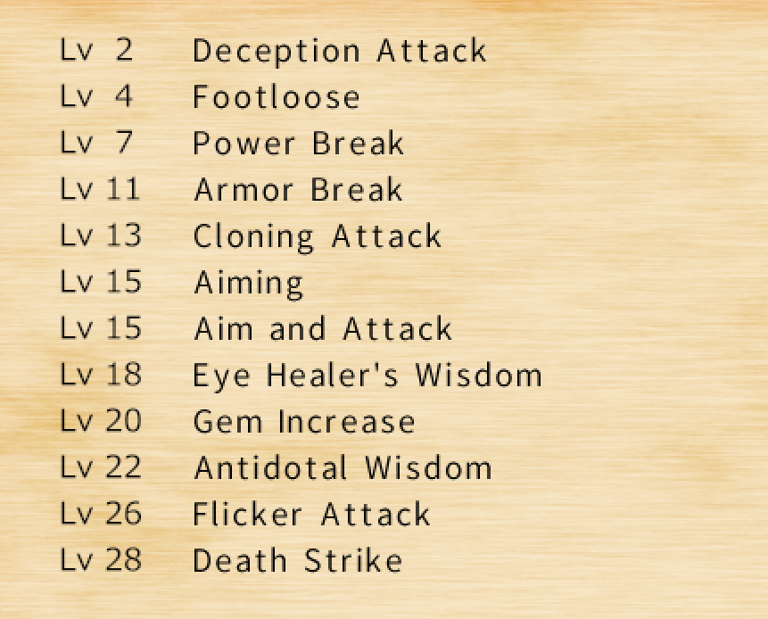 Chain spell – (When using a magic skill, boost MATK and AGI until the next move)