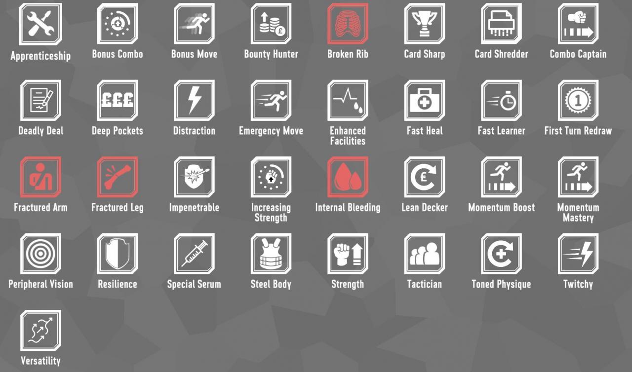 Certain enhancements seem like instant locks like Tactician and Momentum Mastery, whereas others like Resilience and Deep Pockets might take a bit of thought. I didn’t include injuries because those are negative effects that you always want to avoid.