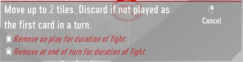 The catch is that it has to be the first card you play, otherwise it is discarded. That means you can’t prep your move with a block or attack. In that sense it’s not as flexible as you’d think. Still very good for emergencies, and especially when playing a Purist difficulty run. Also, unlike the ‘Emergency Move’ enhancement, you get one every turn, not just at the start of the fight.