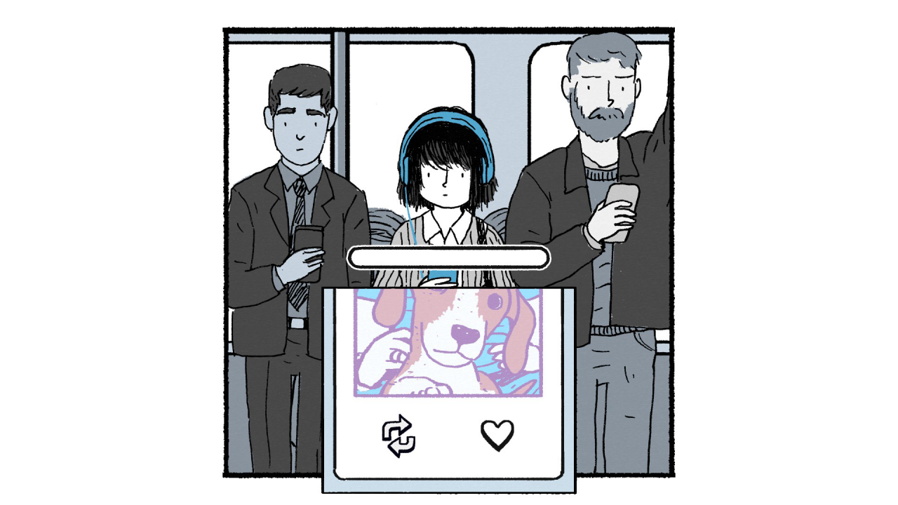 Florence goes to work and browses the feed on social media. Achievement can be obtained by clicking the heart under each photo displayed on the phone.