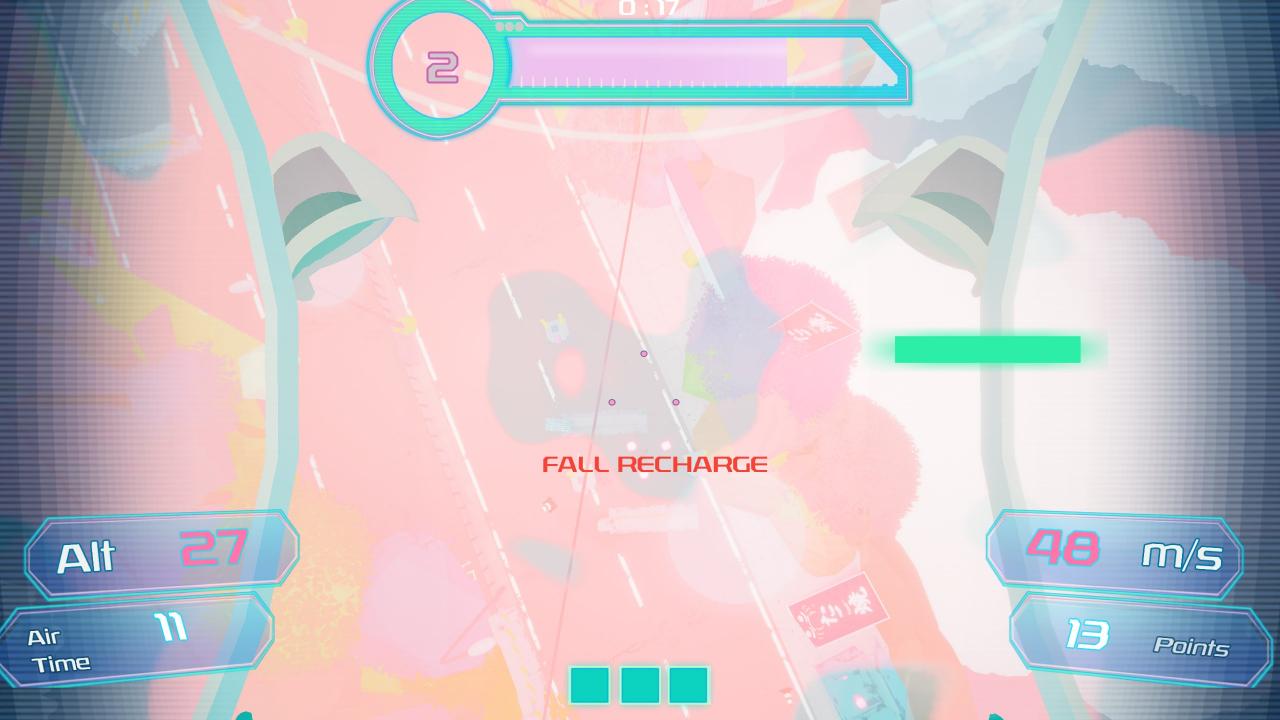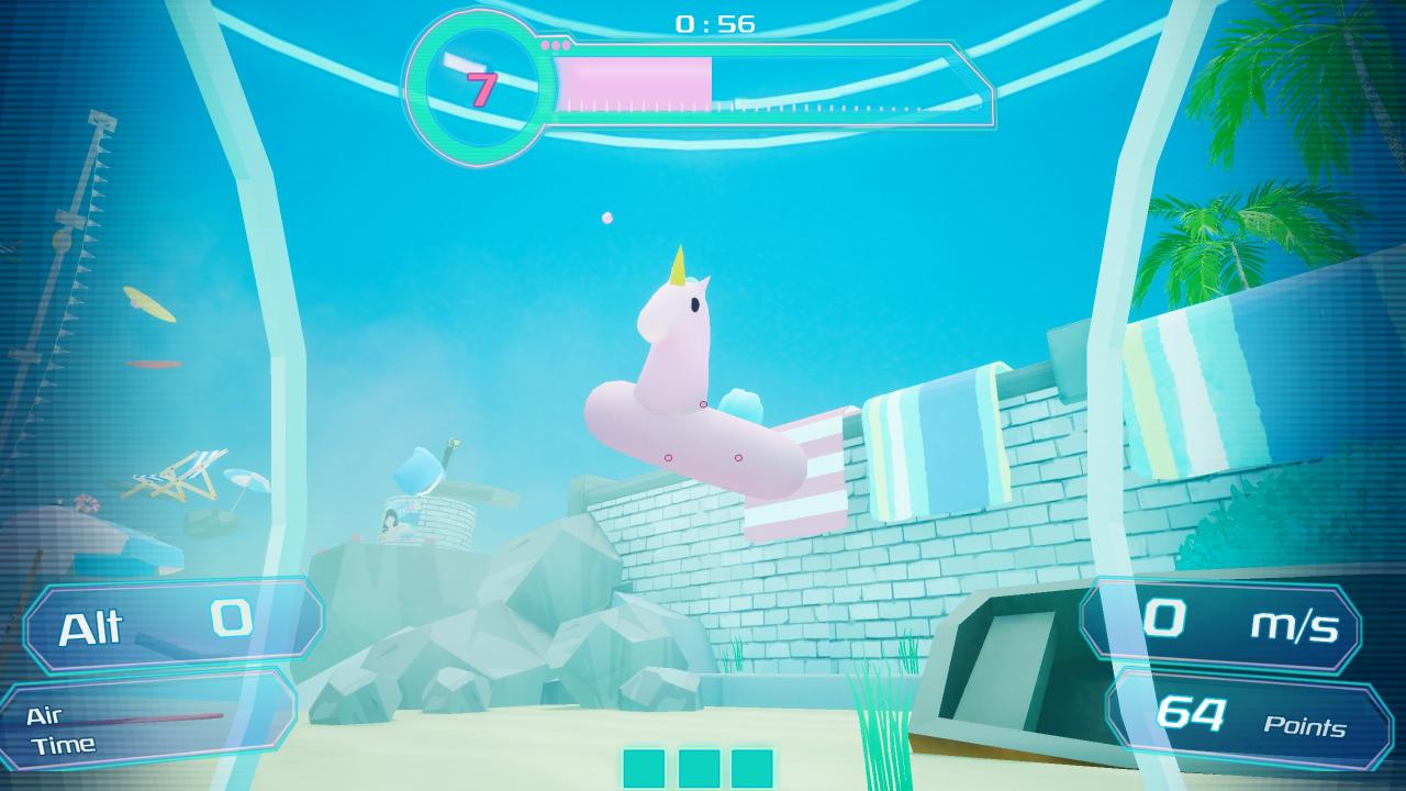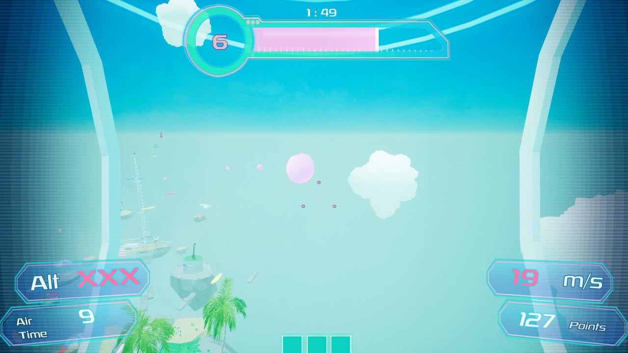 • Power Glide – A more advanced technique that is completely optional. The first glide in a jump that Polpo starts has a horizontal speed cap of 14 m/s. However, subsequent glides can break that cap. Once you’re ready to glide, tap the jump button once and immediately release it to begin and end the first glide instantly. Then press and hold the jump button to initiate the power glide. As long as you hold down the button, Polpo will continue to accumulate more and more horizontal speed, at the cost of a large amount of energy. Once you attain the level of speed you want, you can release the button and resume using the usual short bursts to continue your glide more efficiently. This will take some practice to get used to, but allows for some fancy maneuvers once mastered.