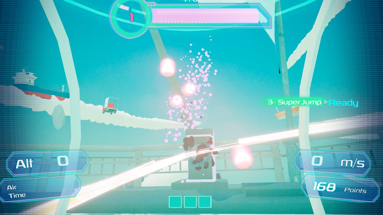 • Super Jump – A limited powerup. Super Jump has only one charge per powerup found, but will launch you high into the air – much higher than you can get through normal jumps! You can also perform air jumps like normal following the use of a Super Jump, allowing you to reach some very high places with minimal energy use.