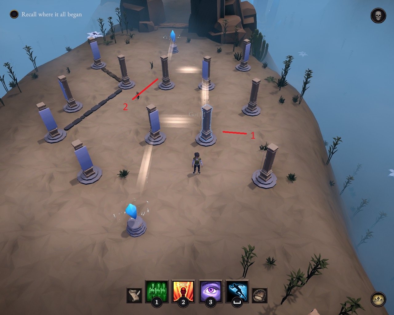 In the boss fight ahead you must defeat him without using any skills by using the boss’s attacks to knock down the totems to get