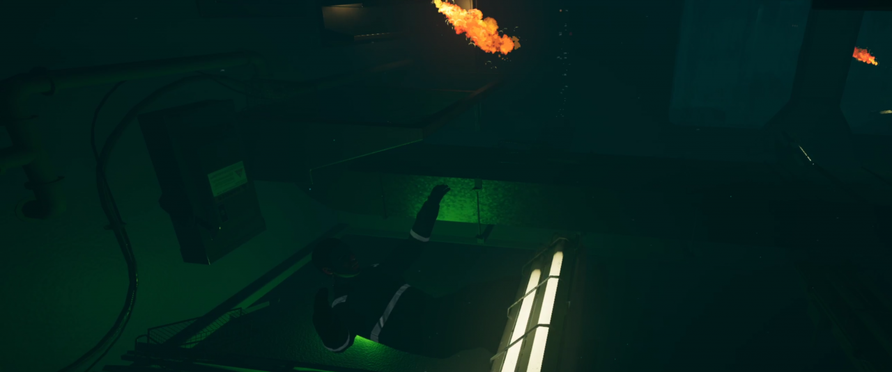 After opening the first door right at the start, there is a small storage room at the front right side. Access it by diving through the vent hole and pushing the grill inside.