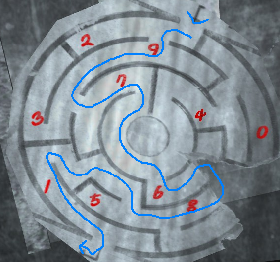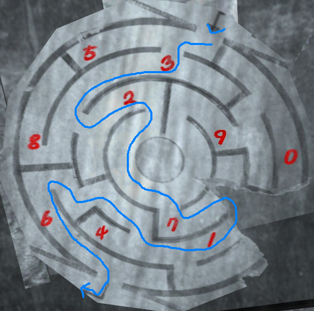 - [SPACE] to use the maze on the glass/mirror to see a maze with numbers.