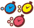 Delay markers, as seen on the right, are considered the weakness of the enemy machine in question. When hitting the enemy with the matching color weapon, a clock is removed. When all of them are removed, the target experiences a delay penalty, pushing them back on the timeline. The clocks only refresh once the enemy takes an action, but they will not reset unless all of them are gone first. You can only remove one clock at a time, no matter how many hits a child performs at once, with sole exception to Boron.