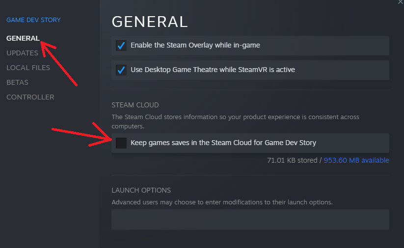 And check the “Keep games saves in the Steam Cloud for Game Dev Story”: